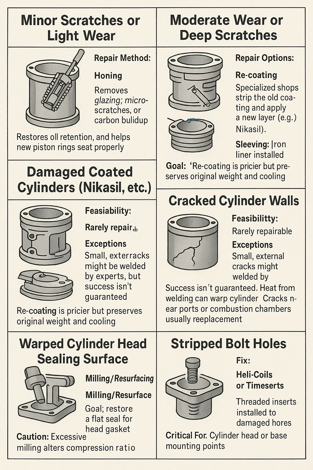 Absolut, motorcykelcylindrar kan ofta repareras beroende på skadans typ och svårighetsgrad. Här är en praktisk uppdelning: